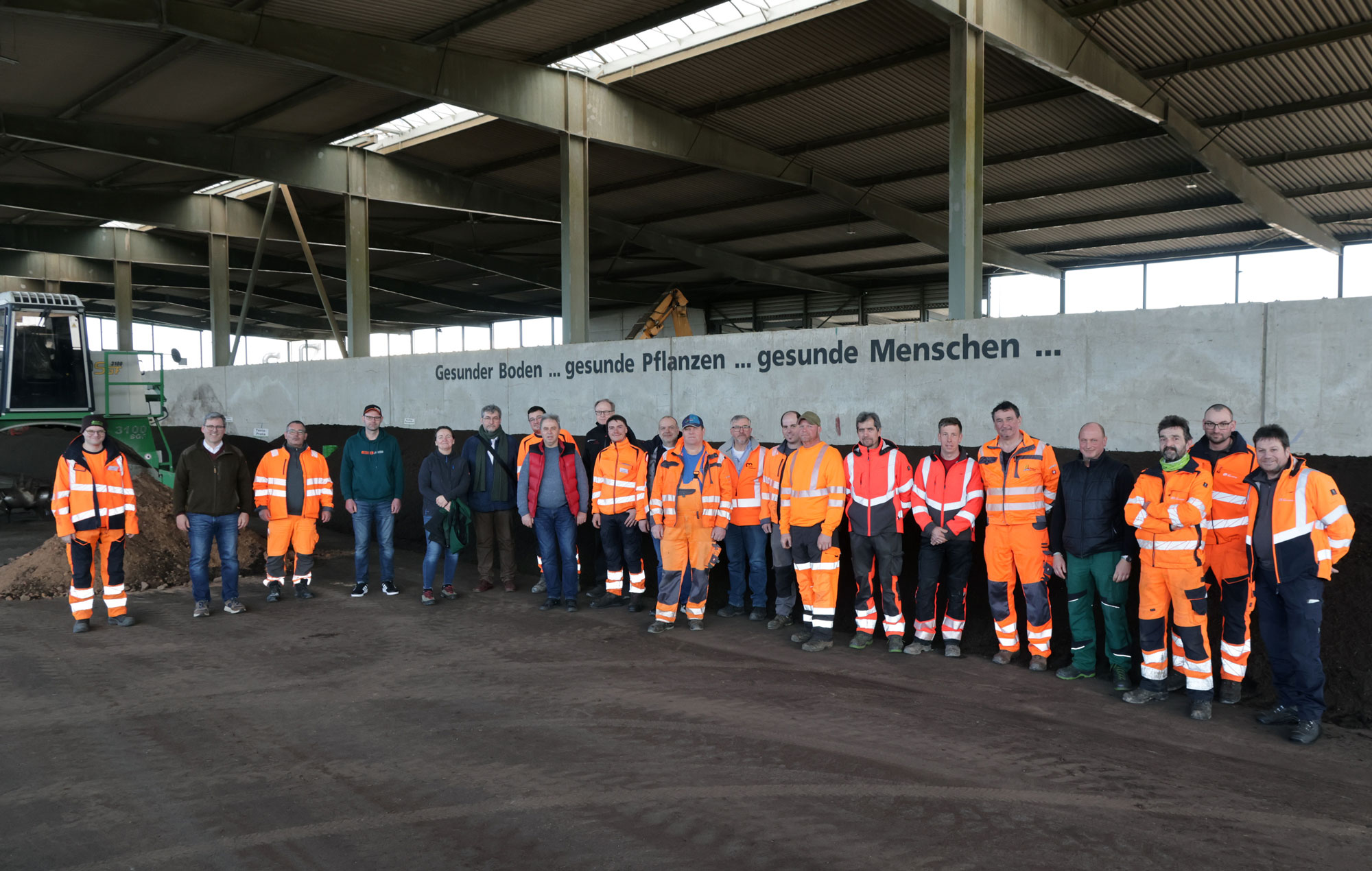 Dieser Prozess fand besondere Beachtung: Aus regionalem Material wie das erwähnte Feinmaterial von den Grüngutplätzen, Mist, lehmhaltiger Erde, Pflanzenkohle und frischem Grün entsteht in rund zehn Wochen die dunkle und krümelige Terra Preta. „Pflanzerde gibt es ja schon immer“, erläutert Martin Hahn, „aber wir produzieren diese Edelsubstrate mit extrem hoher Wasser- und Nährstoffspeicherfähigkeit ohne Torf und ohne synthetischen Dünger“. Für dieses Verfahren „gelenkte aerobe Kompostierung nach Hildebrandt“ ist der Wender „Gujer“ aus der Schweiz im Einsatz, der die Mieten mit Sauerstoff und Wasser aus der eigenen Zisterne versorgt. Insbesondere die Terra Preta dürfte für viele Gemeinden eine sinnvolle und am Ende auch kostensparende Alternative zu „üblicher Pflanzerde“ sein, da die hohe Wasserspeicherfähigkeit selteneres Gießen bewirken kann. Auch die Hackschnitzel „DEKRA zertifiziert als Fallschutz für Spielplätze“ und der Rindenmulch sind wichtig für Bauhöfe.